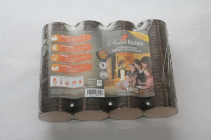 Im Laufe des Tages verdichtetes Holz, bestehend aus 70 % Buchen-, Eichen- und Eschenholzspänen und 30 % Weichholz, das von lokalen Sägewerken bezogen und in der Picardie aus PEFC-zertifizierten Wäldern hergestellt wird.